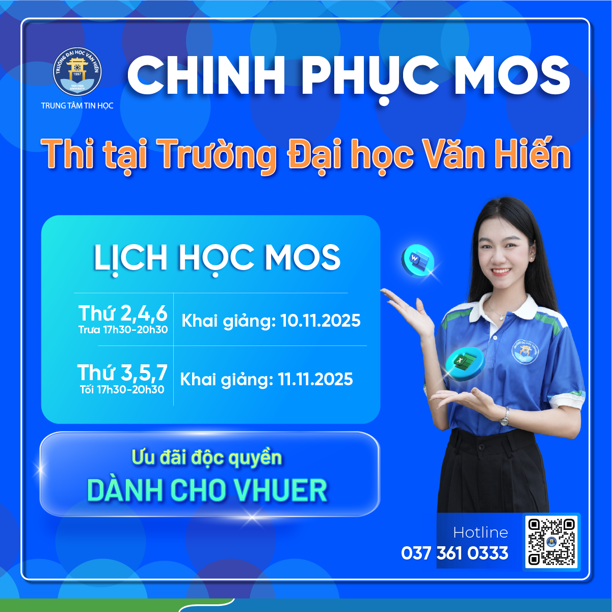Trung tâm Tin học Trường Đại học Văn Hiến chính thức mở khóa học MOS với nhiều ưu đãi hấp dẫn dành riêng cho sinh viên VHU!