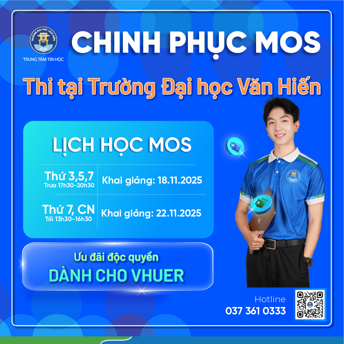 Trung tâm Tin học Trường Đại học Văn Hiến chính thức mở khóa học MOS với nhiều ưu đãi hấp dẫn dành riêng cho sinh viên VHU!