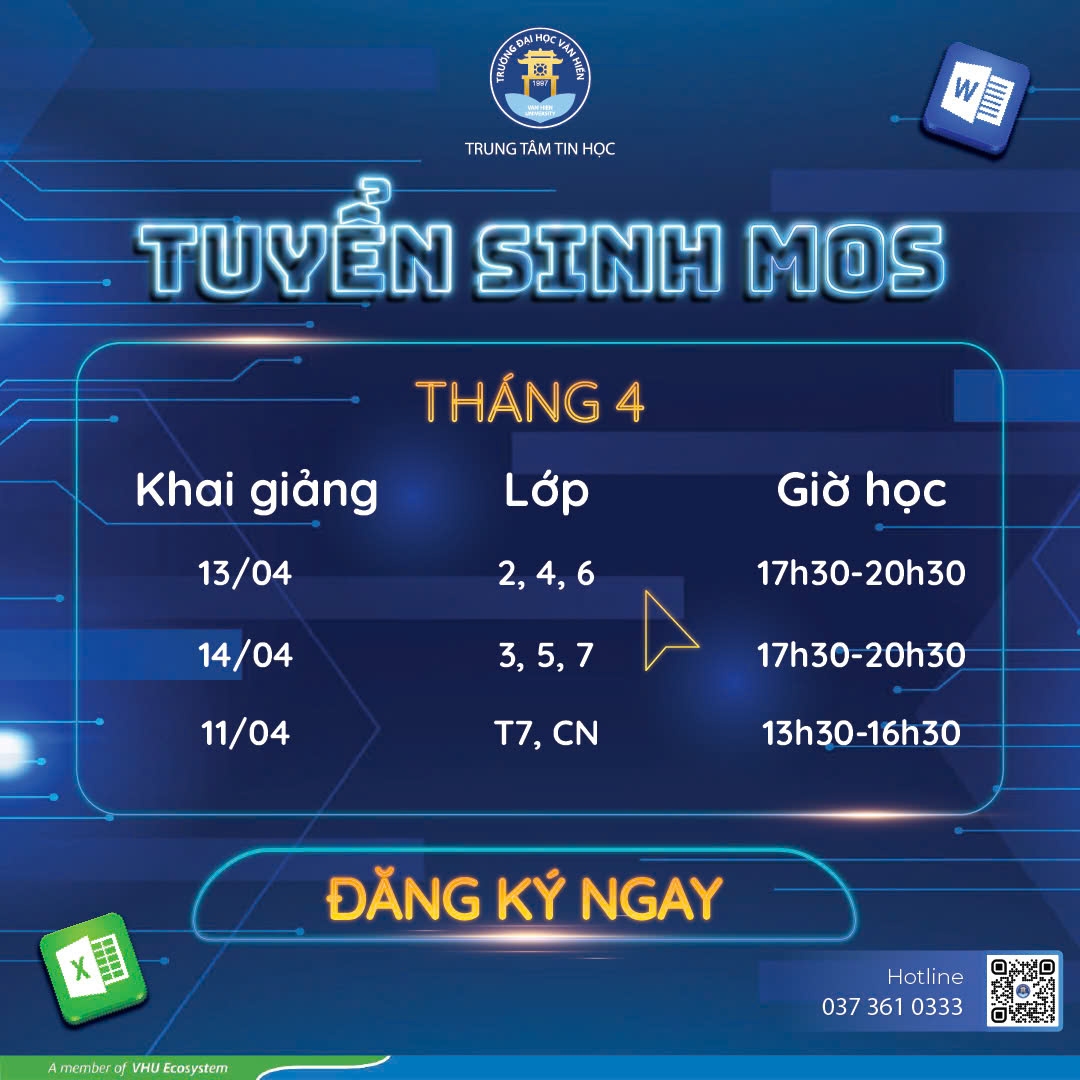 MỞ LỚP MOS – HỌC & THI THÁNG 04 NGAY TẠI ĐẠI HỌC VĂN HIẾN